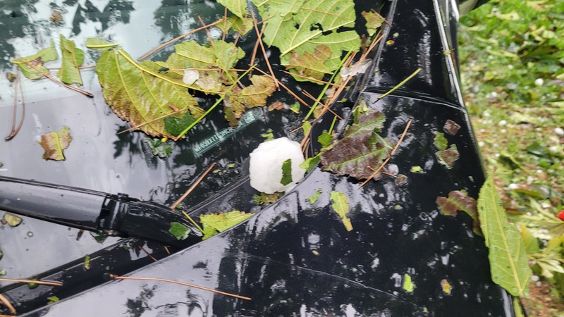 Die Hunde im Auto, wir auf der überdachten Terrasse und ab die Post. Ich kann mich nicht erinnern, wann ich jemals so einen Hagel erlebt habe. Es kamen teilweise tennisballgroße Brocken vom Himmel und wir durften zusehen und zuhören, wie sie aufs Auto trommelten. Lange Rede, kurzer Sinn. Frontscheibe kaputt und unzählige Dellen über das ganze Auto verteilt. Gott sei Dank ist den Hunden nichts passiert. Es war unfassbar, wie es da abging. Wie es kam, war es auch wieder vorbei.