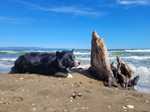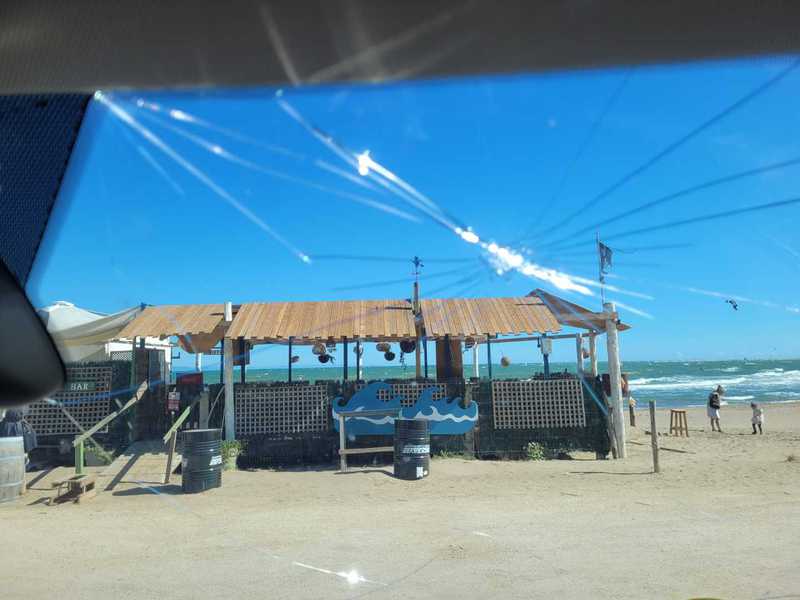 Auch nicht, als plötzlich Hunderte Vögel laut schreiend vom Meer in Richtung Landesinnere geflogen sind. Allerdings hat es angefangen zu donnern und Jim hat natürlich sofort Muffe gehabt. Da haben wir beschlossen, ihn mitzunehmen und haben ihn ins Auto gesetzt. Mit dem Donner wurde es immer schlimmer und es begann zu schütten. Deshalb haben wir die beiden Anderen auch ins Auto gepackt. Genau zu dem Zeitpunkt gings mit dem Hagel los.