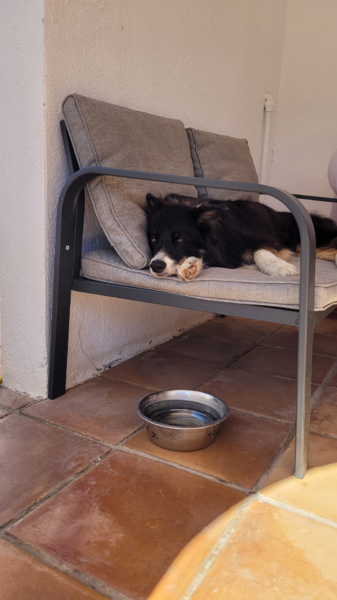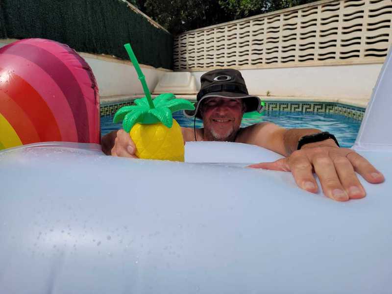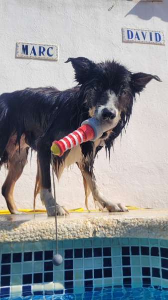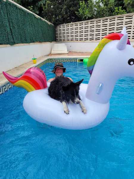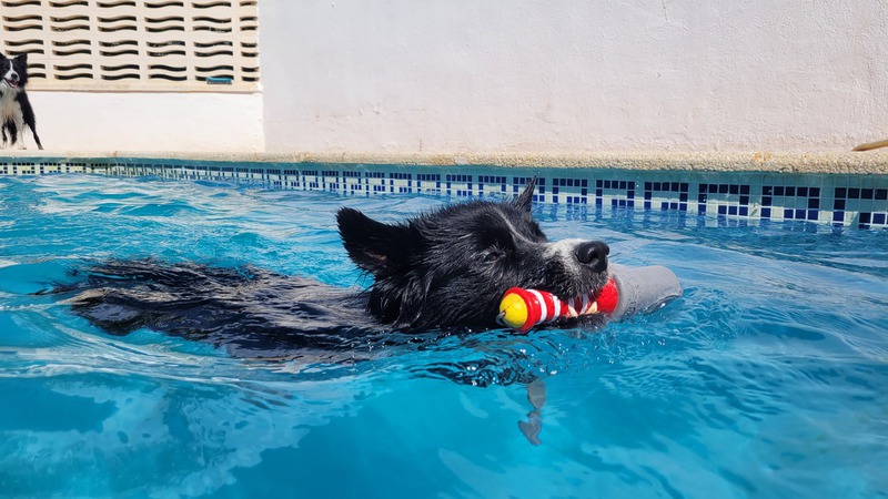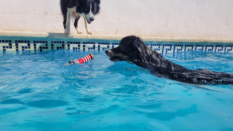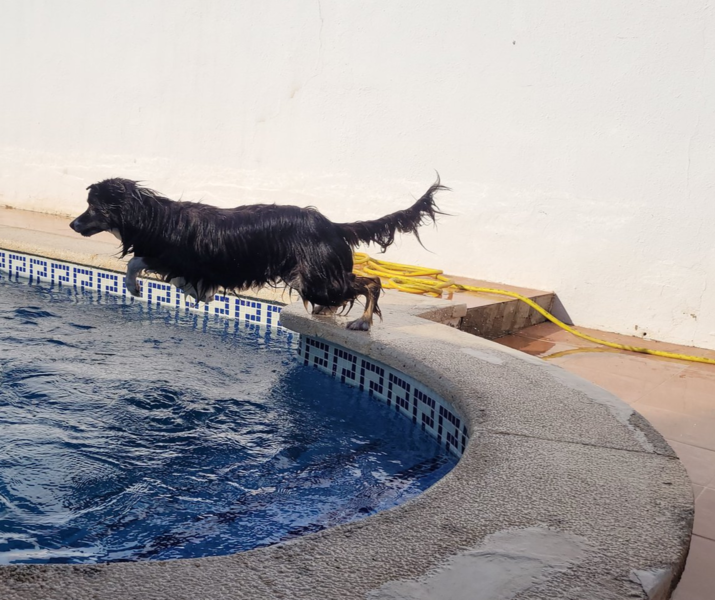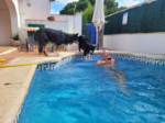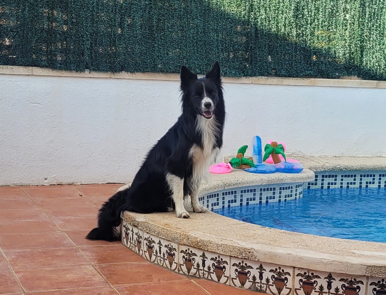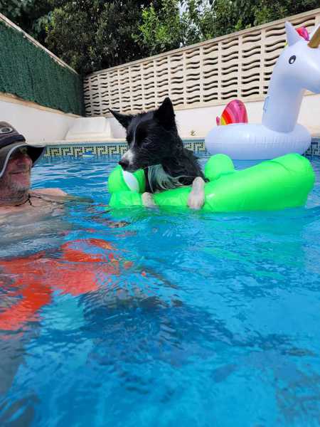 Bifi war einfach nur noch happy. Sobald wir am Haus waren, stand er am Pool und hat nur darauf gewartet, sein "Schwimmkommando" zu bekommen. Wir wissen nicht, wie viele Kilometer er in dem Pool letztendlich geschwommen ist, es waren aber etliche.