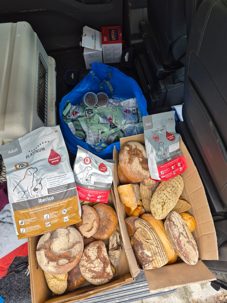 Die müssen sich wie fast alle Gnadenhöfe irgendwie über Wasser halten und sind für solche Spenden sehr dankbar. Zudem bekommen wir von einem Freund in Jungingen alle zwei oder drei Wochen altes Brot in größeren Mengen. Die gehen genauso an den Hof und werden sehr dankbar angenommen.